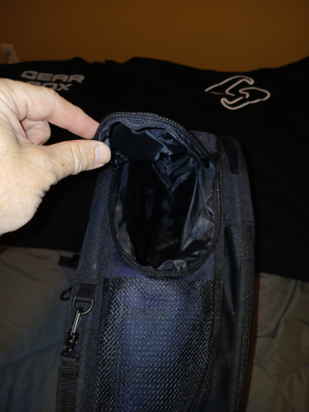 First image: The empty bag as it comes out of the box, along with 2 new t-shirts. One can never have too many Gearbox t-shirts. ICON & BLOCKThe next two images show the dedicated and isolated shoe tunnel. There are a pair of size 13 shoes in that tunnel for the rest of the series of photos.